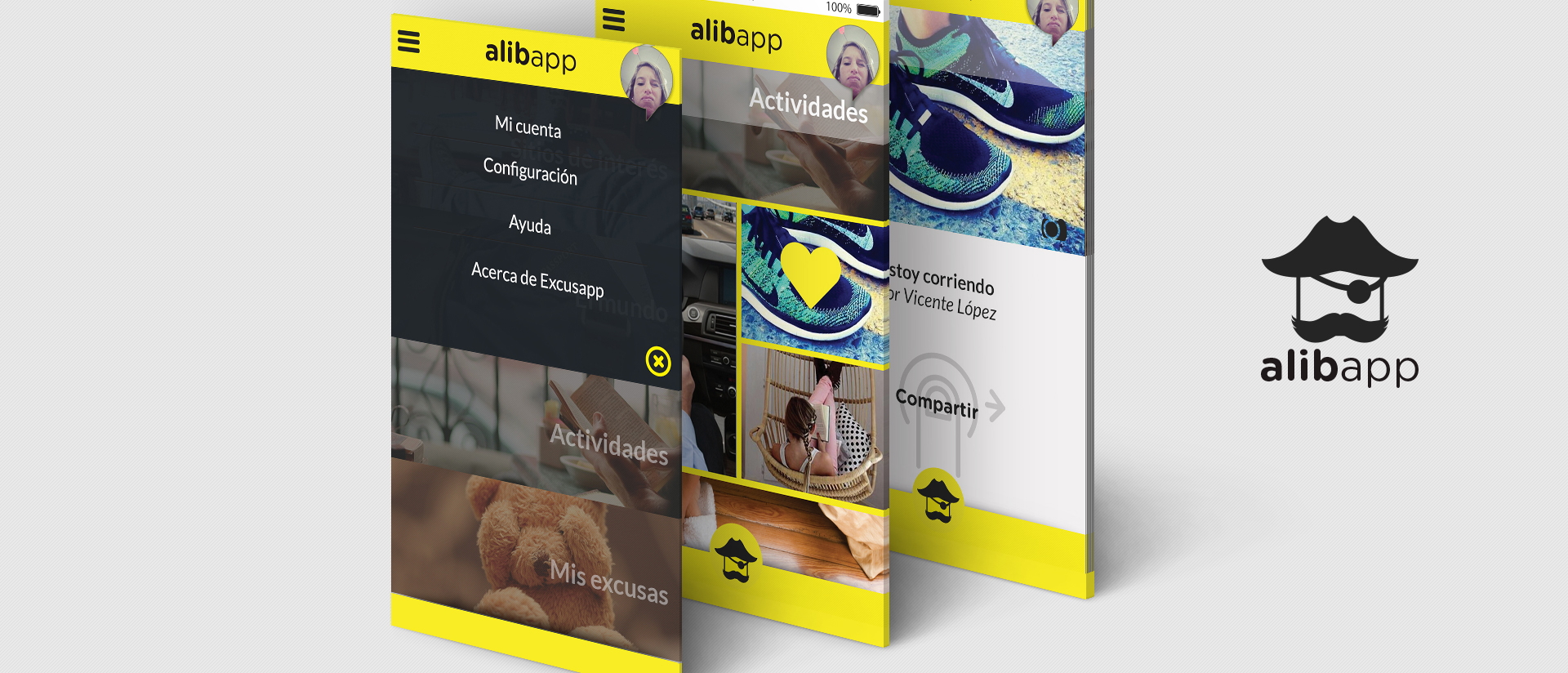 ALIBAPP Es la excusa/prueba perfecta. Ahora sí podés estar en dos lados a la vez, realizando actividad física en la comodidad de tu sofá a tan sólo un click. Naming: ALIBAPP nació de su término etimológico alibi, que significa coartada en inglés.