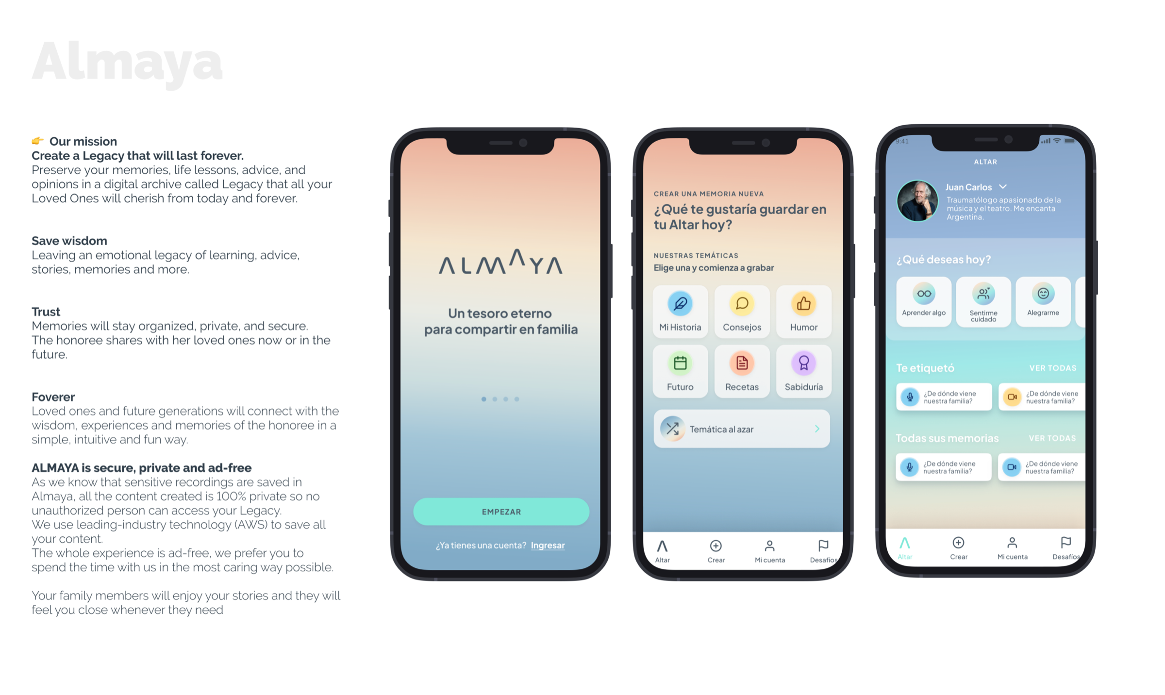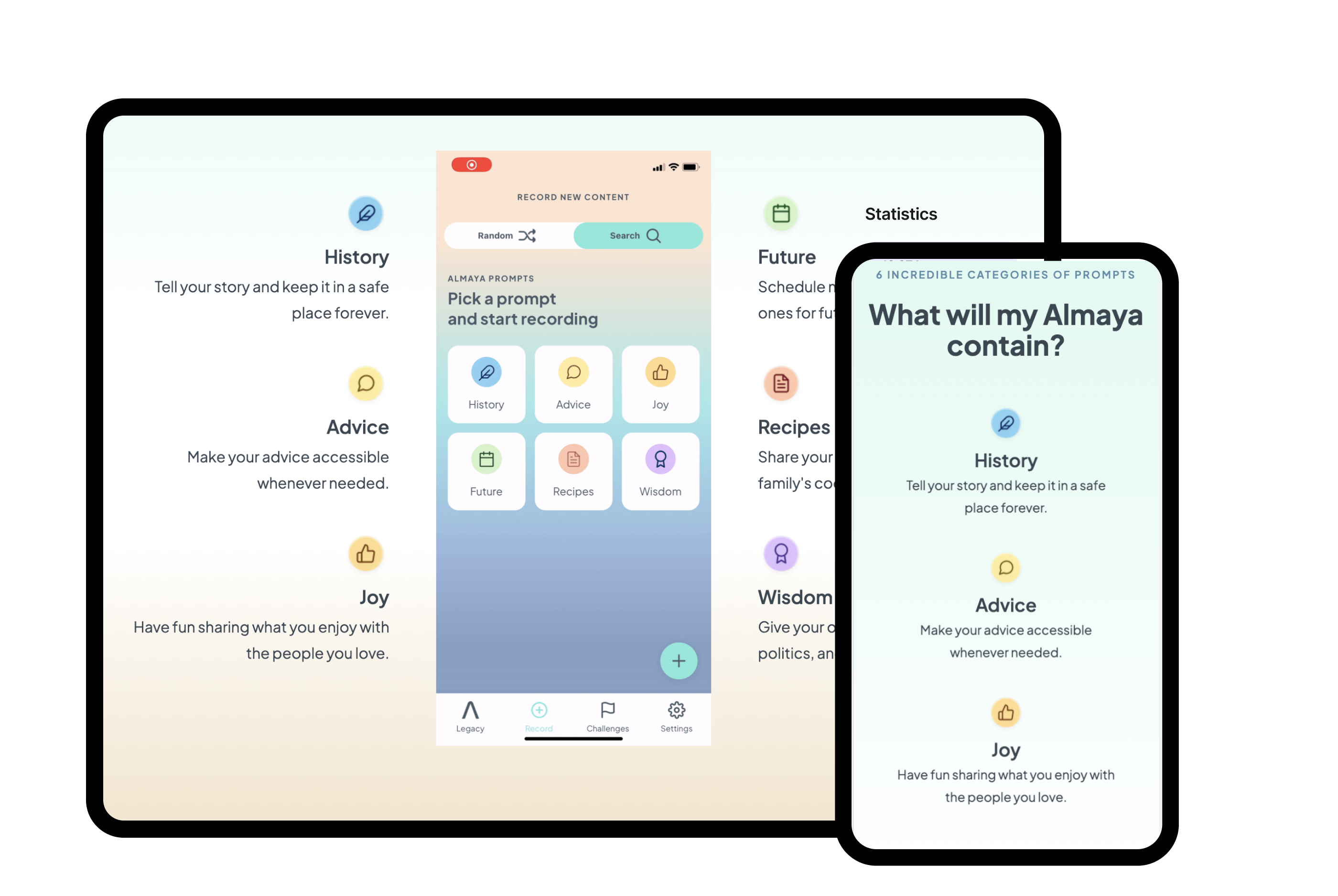 As we know that sensitive recordings are saved in Almaya, all the content created is 100% private so no unauthorized person can access your Legacy.