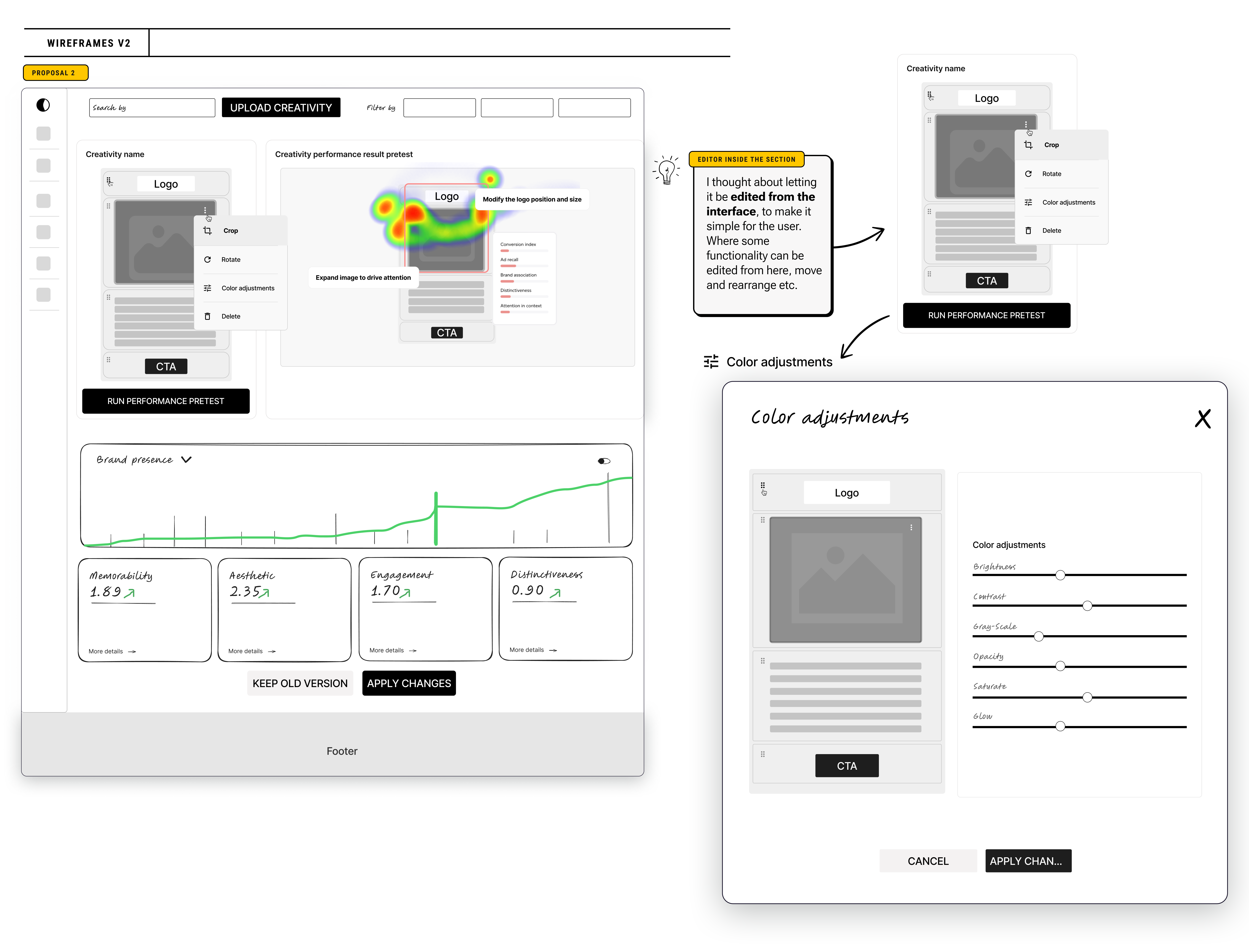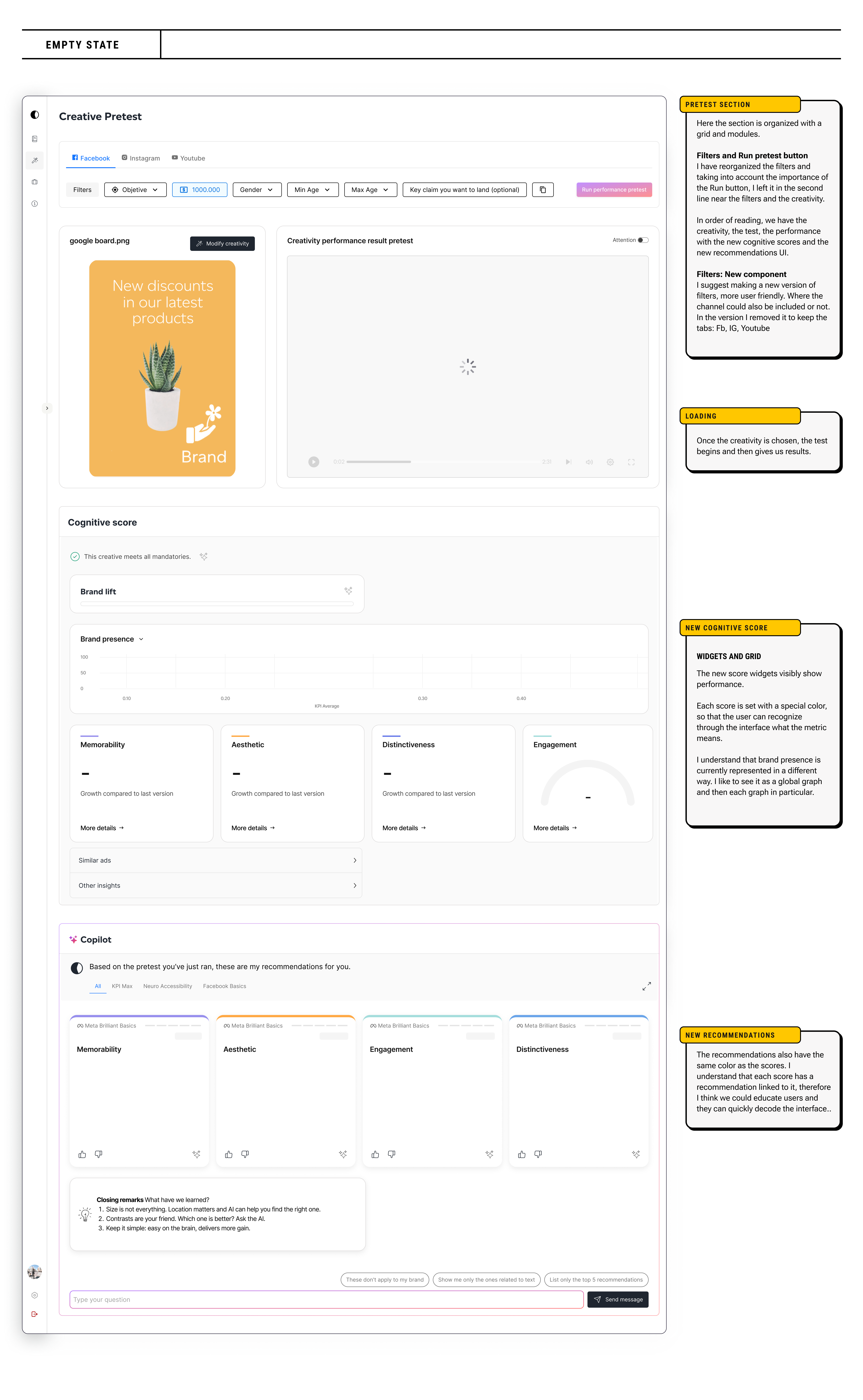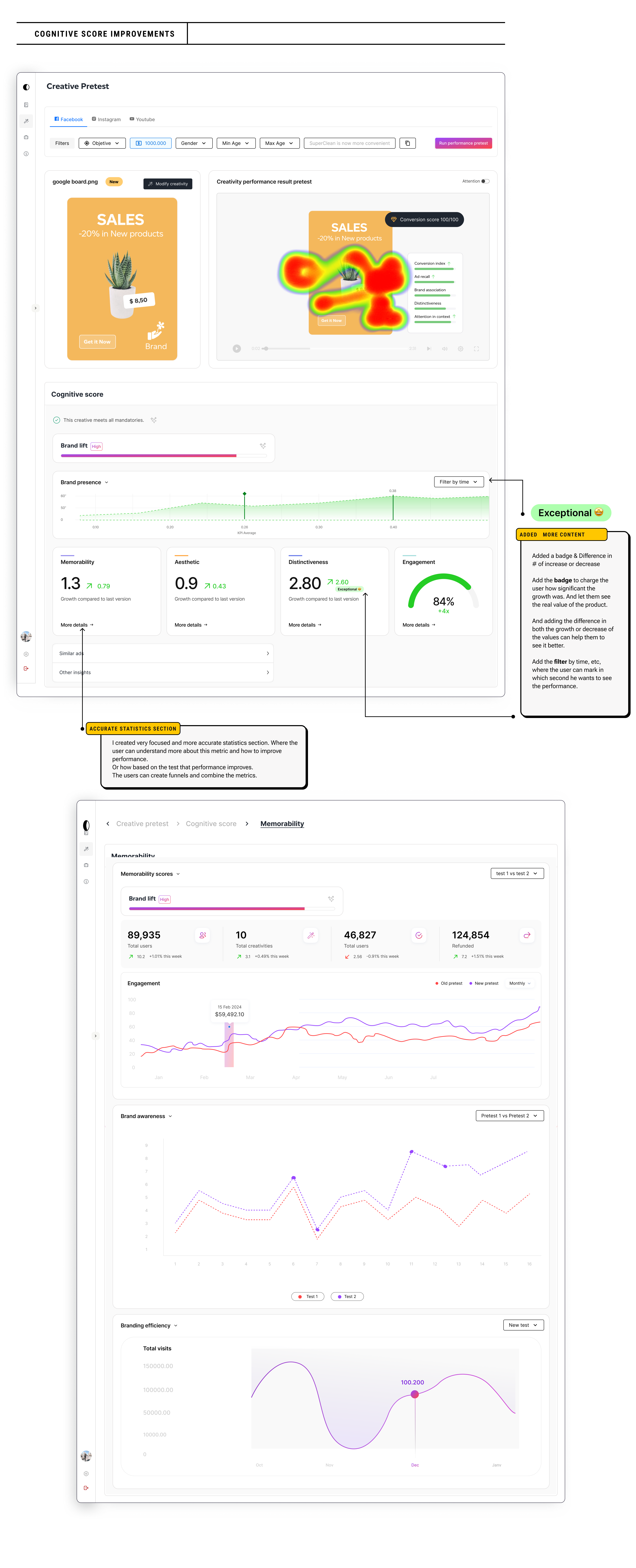 Based on the user test, I made a series of improvements, where we can see badges, filters, and the section with metrics focused on each vertical.
