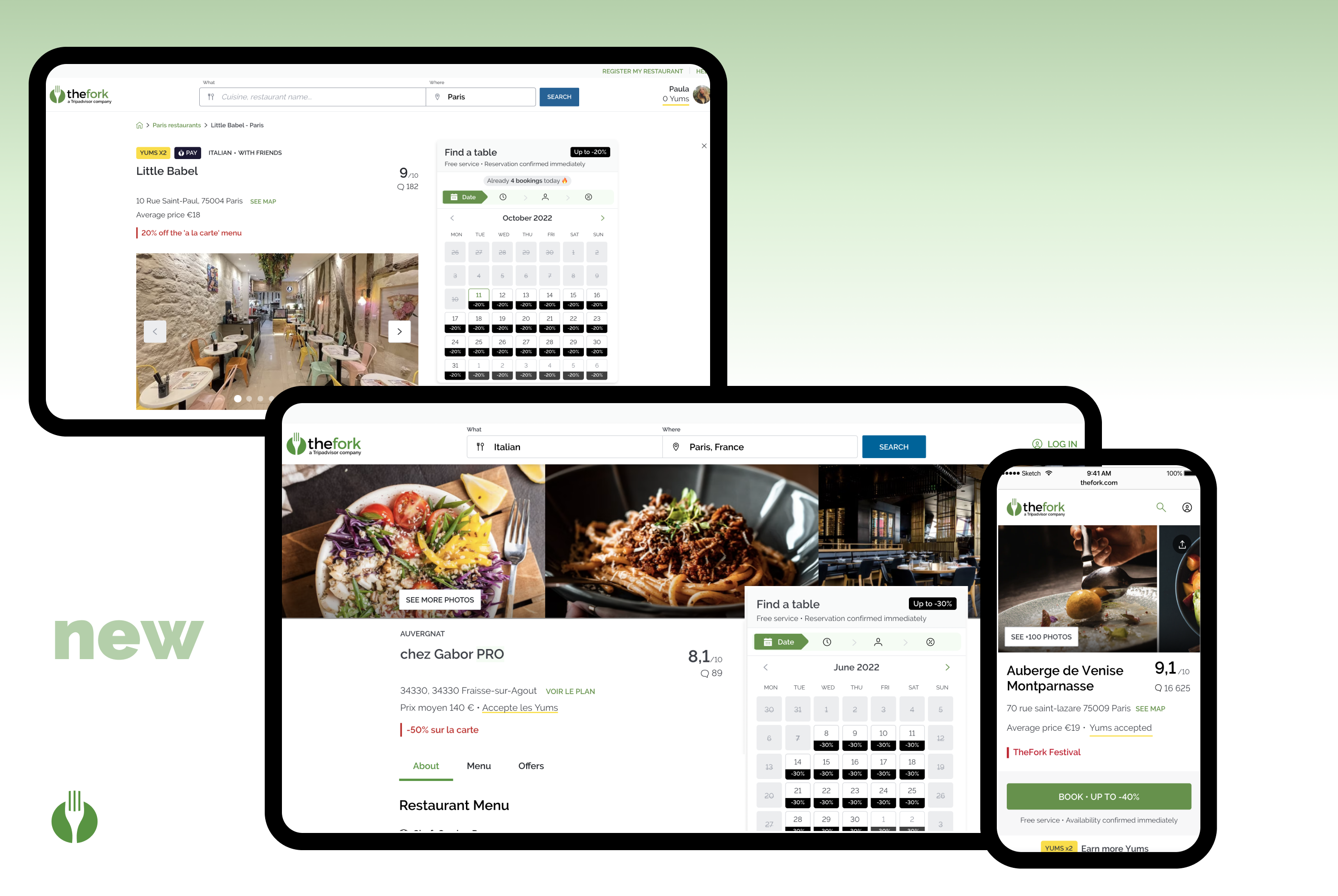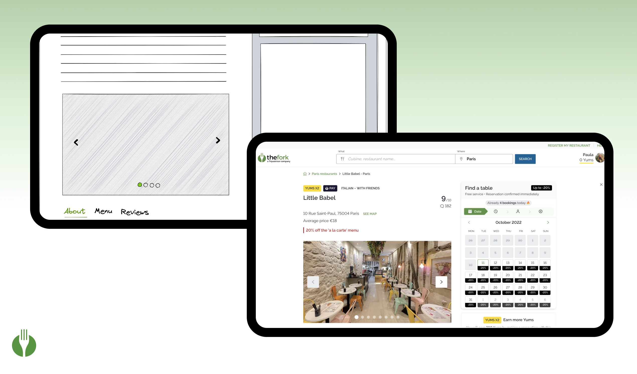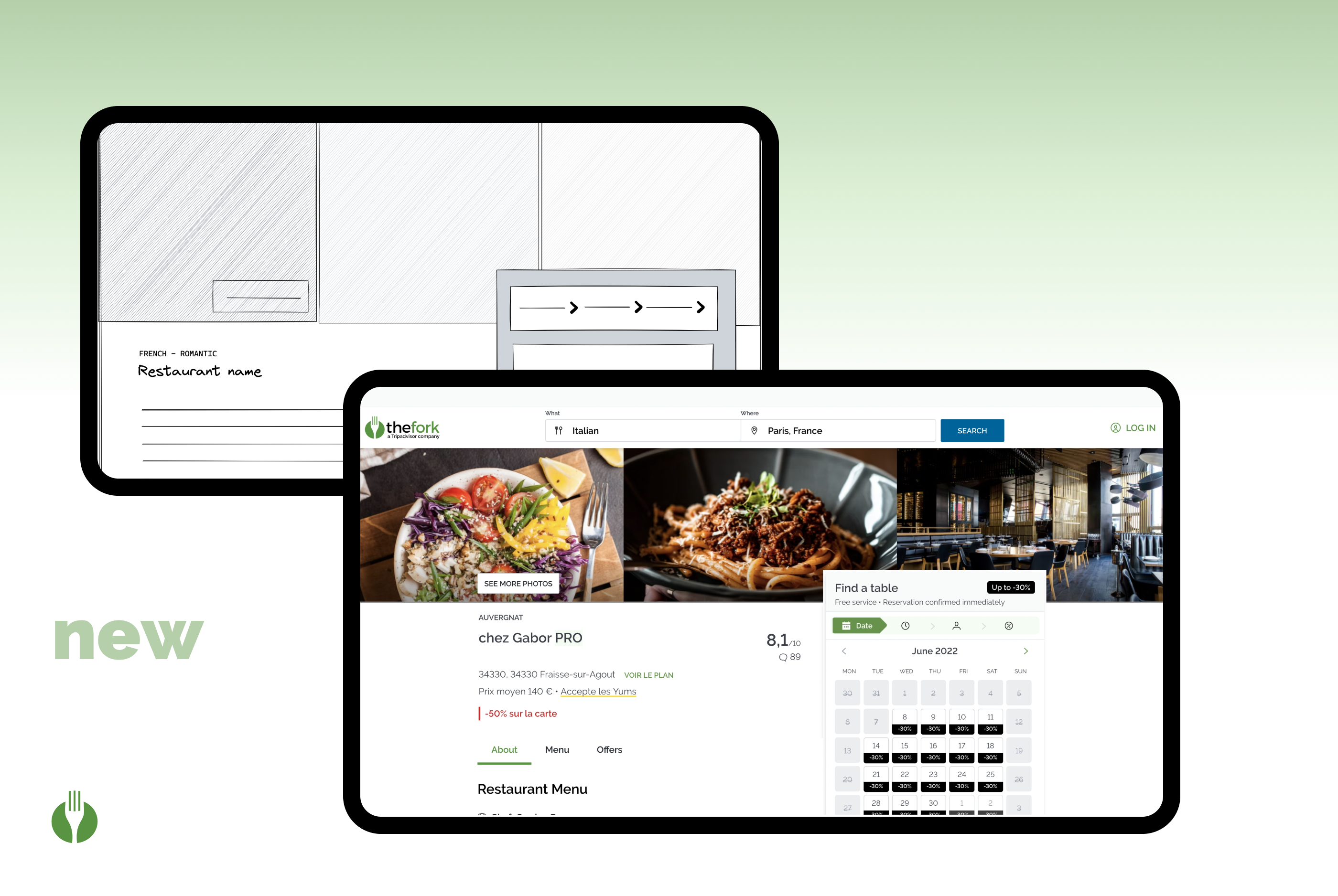 Space on screen: TheFork 21% VS Competitors 64%.